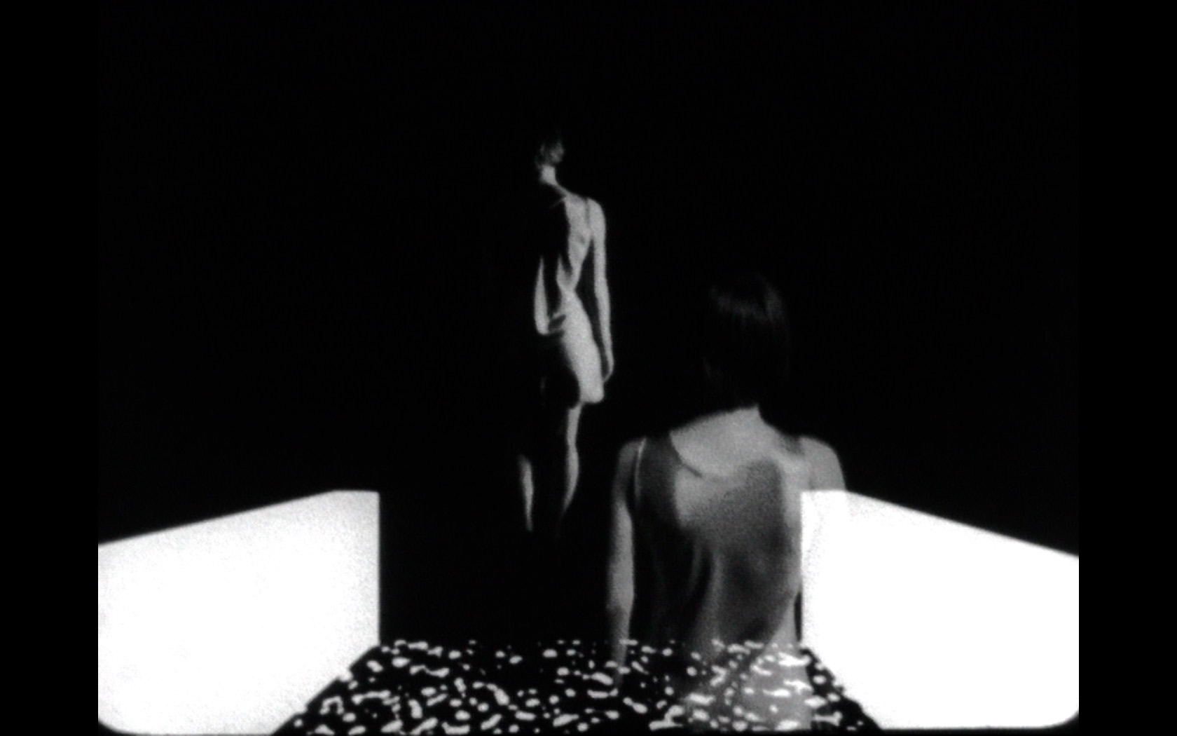 Cinematic Experiment Wall Piece #1 (mute). The work aims to create what Sergei Eisenstein, called the ‘dynamic square’, a container with malleable proportions that should be responsive to the aesthetic needs of the artist. The work deploys darkness at the edge of a cinema frame like a theatrical wing, I am seeking flexibility and a potentially limitless number of modes of encounter between the viewer and the cinematic frame. Dancer Vicki Van Hout
